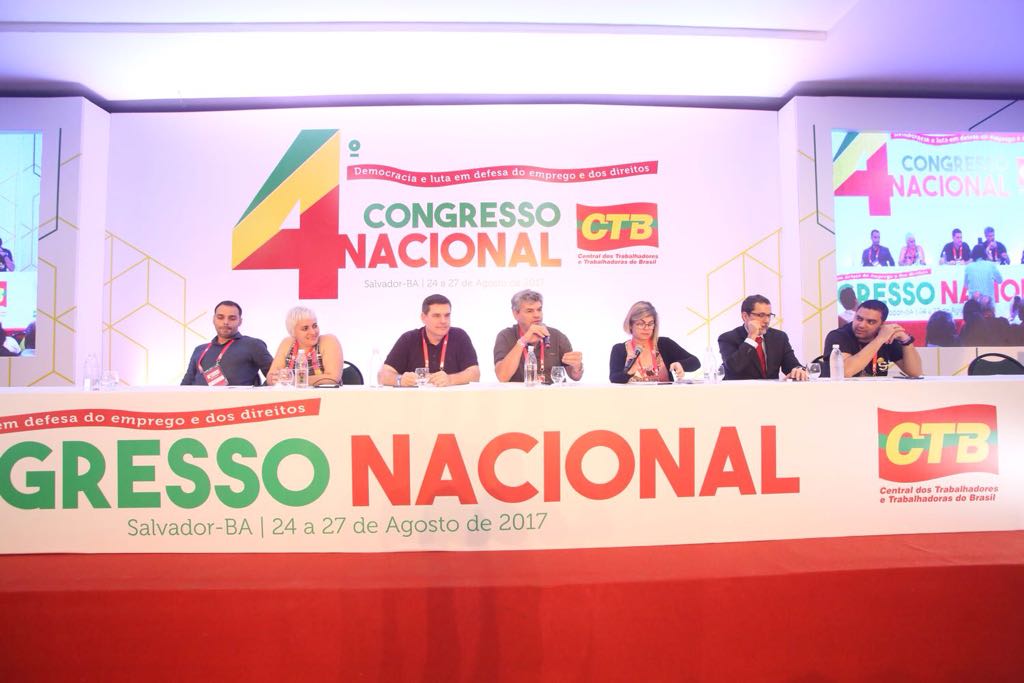 A mesa foi presidida pelo presidente da CTB-BA, Pascoal Carneiro, e integrada pelos dirigentes Valéria Morato (CTB-MG), Elgiane Lago (CTB), Carlos Muller (CTB) e Márcio Ayer (Sindicato dos Comerciários do Rio de Janeiro).