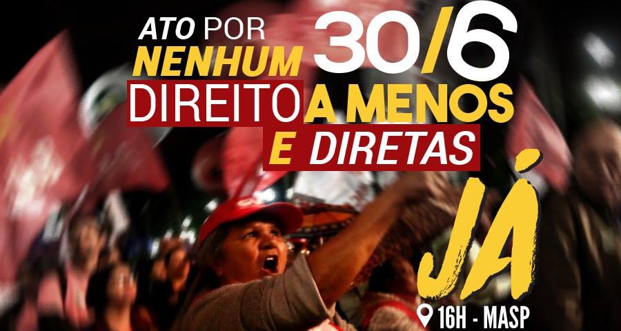 • 30 de junho: Vamos parar o Brasil contra a reforma trabalhista, em defesa dos direitos e da aposentadoria.